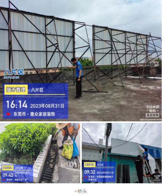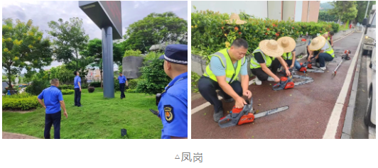 全市城管系统针对户外广告、雨水箅子、绿化树木、市政道路、城市照明等户外绿化及设施开展重点防御,积极应对防汛防台风各项准备工作。市政园林管理中心、东莞植物园、广灯中心、市容环卫中心共同关注天气变化,强化监管排查安全隐患,全力筑牢安全屏障。