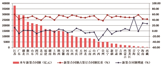 值得一提的是,江苏新签合同额超过3.7万亿元。2023年,江苏建筑业企业新签合同额达到37800.49亿元,比上年增长12.1%。新签合同额超过2万亿元的还有广东、湖北、浙江、山东、四川等5个地区。新签合同额增速超过10%的有青海、海南、西藏、江苏等4个地区,14个地区新签合同额出现负增长,其中广西、贵州、新疆新签合同额均出现了超过10%的负增长。
