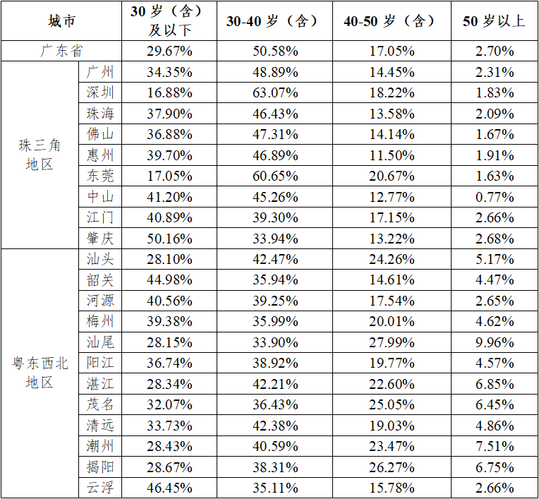 2023年广东省各市使用住房公积金个人住房贷款的职工年龄分布情况
