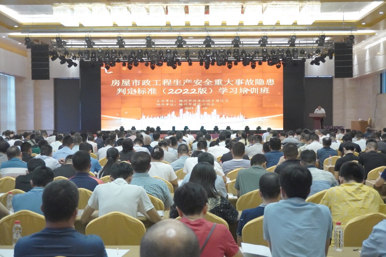 为深入开展学习贯彻习近平新时代中国特色社会主义思想主题教育,加快推进房屋市政工程重大事故隐患专项排查整治2023行动,认真贯彻落实《房屋市政工程生产安全重大事故隐患判定标准》,推动监管执法人员和从业人员准确理解和掌握标准内容,提升重大事故隐患排查整治能力。8月10日上午,由梅州市住房和城乡建设局主办,市建筑业协会协办,组织开展了全市房屋市政工程生产安全重大事故隐患判定标准(2022版)及事故案例分析专题学习培训。市级和各县(市、区)工程质量安全监管人员、市危大工程专家库成员以及施工企业、监理企业分管安全工作负责人、项目经理、安全员、总监理工程师、监理人员等共428人参加学习培训。