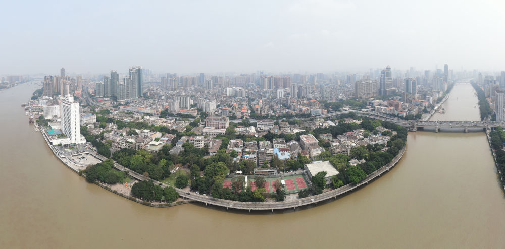位于广州市荔湾区的沙面(4月13日摄,无人机照片)
