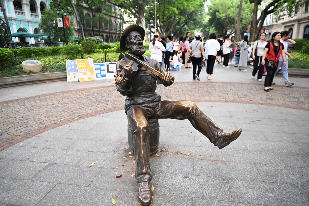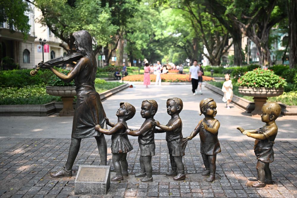 这是4月13日拍摄的广州沙面大街的雕塑