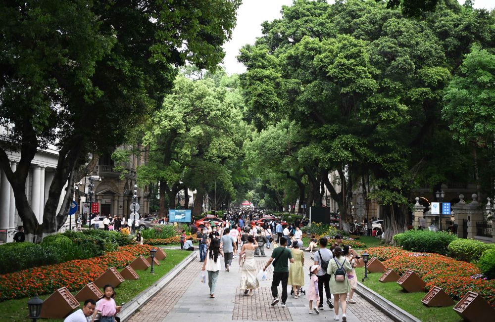 广州沙面大街游人如织(4月13日摄)