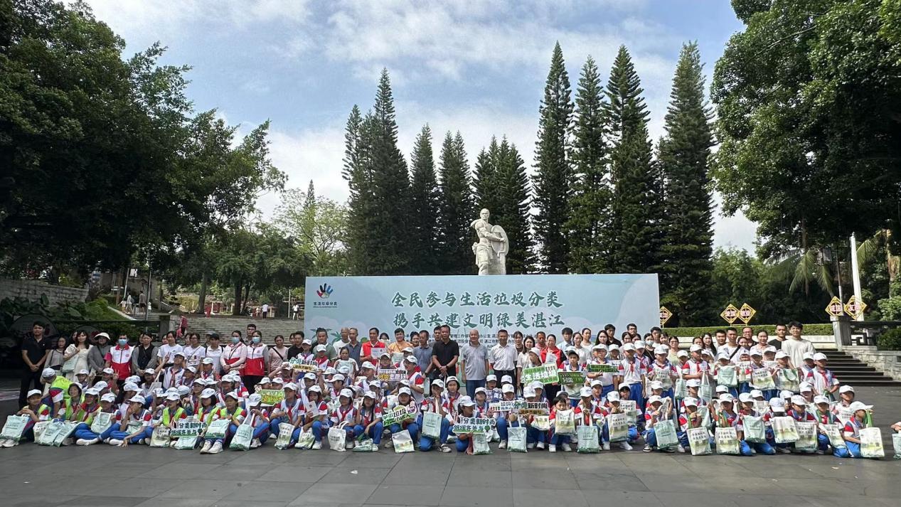 9月26日上午,湛江市分类办联合湛江市城市管理和综合执法局、市教育局,各区分类办和街道、社区以及广东省建筑科学研究院集团股份有限公司、市16小学等志愿者约300人在寸金桥公园开展“全民参与生活垃圾分类 携手共建文明绿美湛江”主题宣传活动。