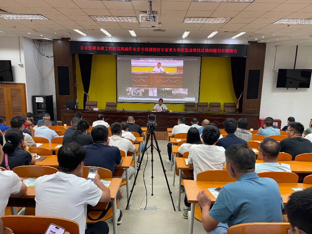 为了加强建筑起重机械安全生产管理,进一步提高全市房屋市政工程安全生产管理水平。2025年10月13日下午,清远市住房和城乡建设局召开全市房屋市政工程建筑机械作业安全培训暨省专家重大事故隐患帮扶反馈问题剖析视频会。会议由市住房城乡建设局党组成员、副局长卢昌耀主持。会议主会场设在建设大厦503室,各园区和县(市、区)住房城乡建设主管部门设分会场。
