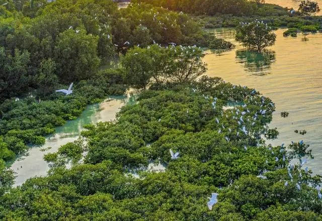 雷州市雷高镇红树林,成群白鹭休憩觅食(驻雷高镇帮扶工作队供图 何盈摄)