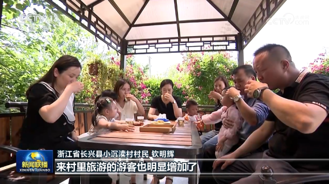 浙江省长兴县小沉渎村村民 钦明辉:这些年我们的河道肉眼可见地变清了,来村里旅游的游客也明显增加了。