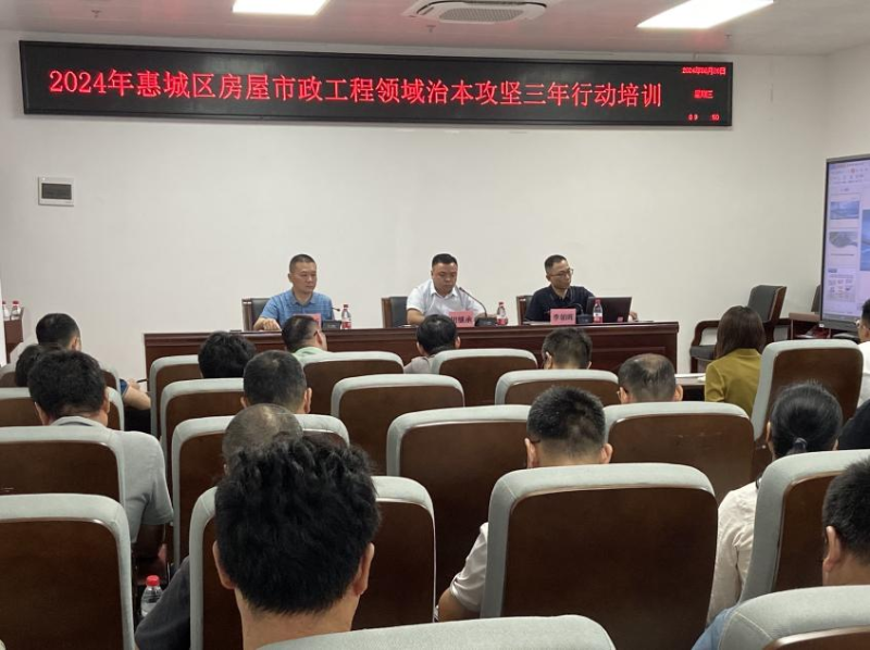 6月26日上午9点30分,在惠城区住建局五楼516会议室由分管副局长胡继承同志主持召开关于2024年惠城区房屋市政工程领域治本攻坚三年行动培训会,全区在建工程项目的企业负责人(或区域总)、项目经理共计96人到场参加此次培训。
