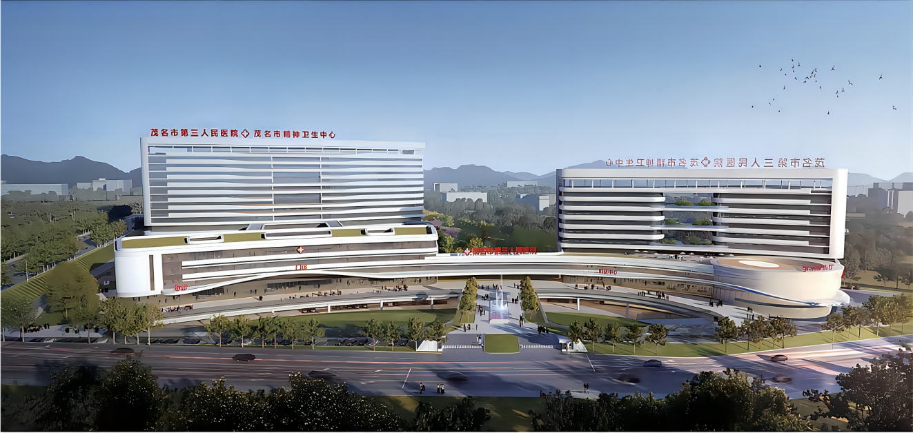 茂名市第三人民医院新院区建设项目位于茂名市茂南区山阁镇露天矿北排土场地块,项目占地面积约9.4万平方米,规划总建筑面积约14万平方米,地上建筑面积约11万平方米,地下建筑面积约3万平方米,共可提供1500张床位,主要建设内容为门诊综合楼、医技综合楼、住院综合楼、科研教学综合楼、垃圾站及污水处理站等,并配套相应的设备设施。该项目为茂名市卫生领域补短板项目,省、市重点民生项目,是国家和省、市的重大部署,政治意义重大。
