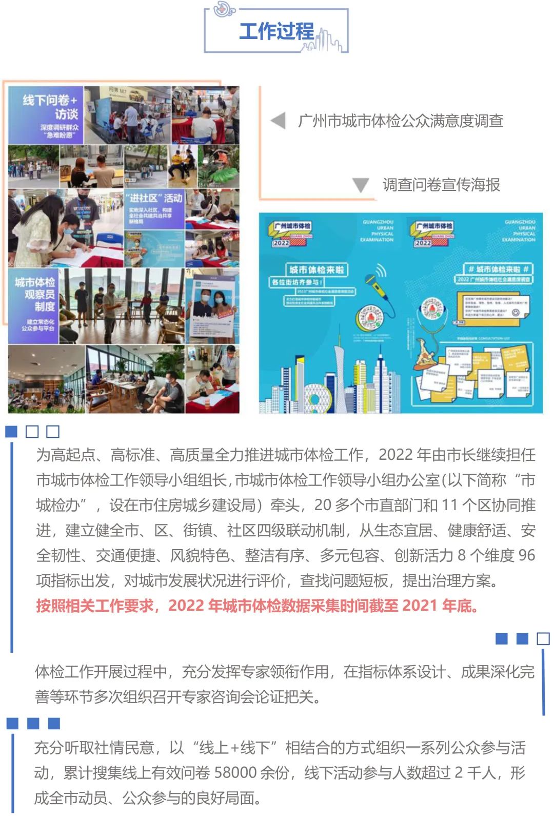 城市体检工作是贯彻落实习近平总书记重要指示精神和中央城市工作会议要求,通过综合评价城市发展建设状况、有针对性制定对策措施,优化城市发展目标、补齐城市建设短板、解决“城市病”问题的一项基础性工作,是统筹城市规划建设管理、推动城市人居环境高质量发展的重要抓手。广州市自2019年起成为全国首批城市体检试点城市,2020-2022年连续3年被选为城市体检样本城市。