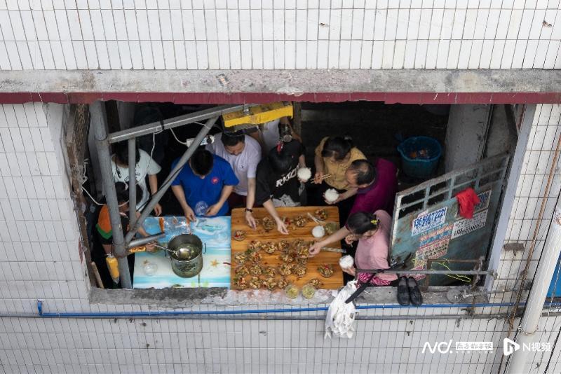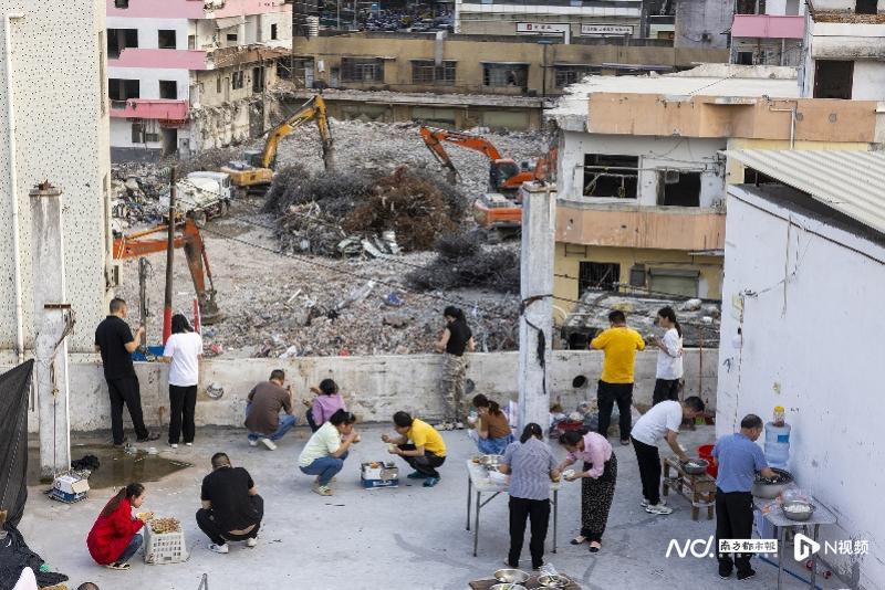 吃晚饭的工人望向拆卸后的F37地块。