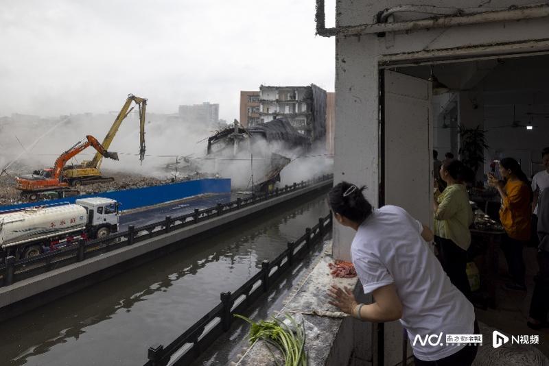 F37地块最后一栋大楼倒塌瞬间。